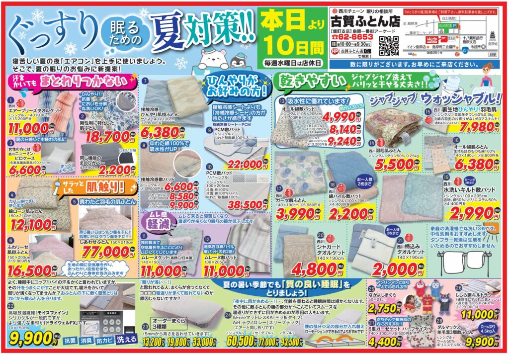 疲れやすい夏こそ睡眠が大事!ぐっすり眠るためのアイテムを多数取り揃えました、ご来店お待ちしております。
