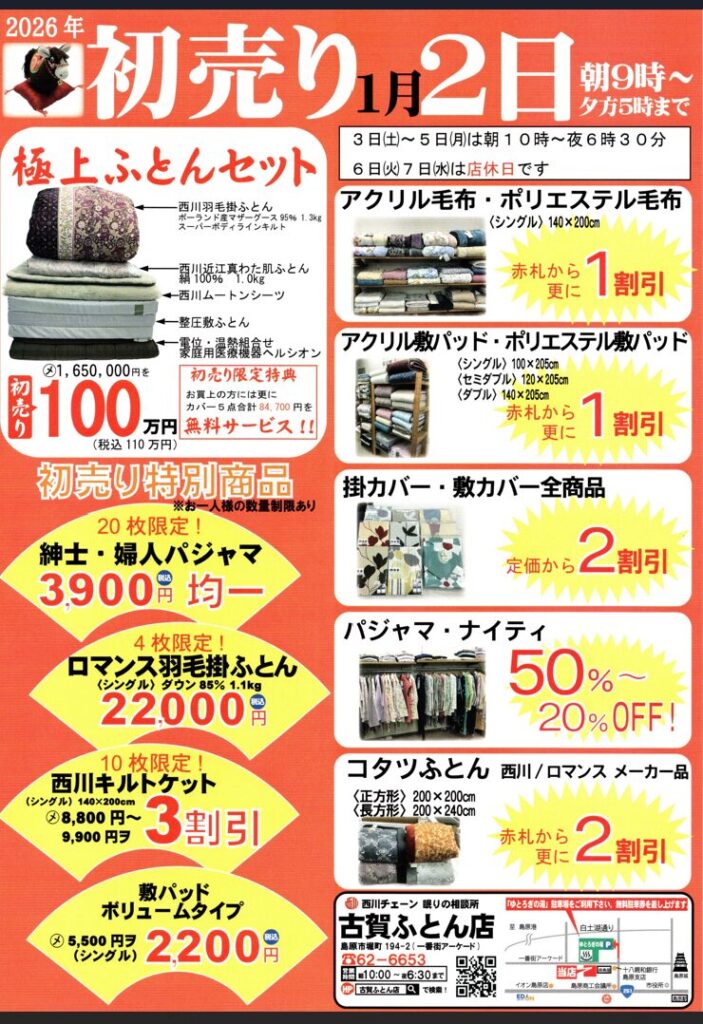 2026年初売りです。今年もよろしくお願いします。